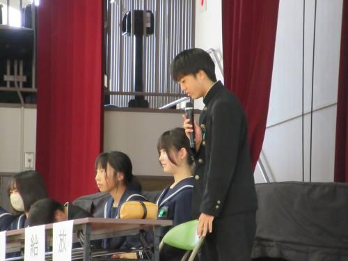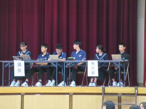 今回の議題は「#北中自慢発見部 ~北部中の自慢をみんなでつくろう~」。最初に生徒会長から「北部中らしさを見つけていこう」という話がありました。