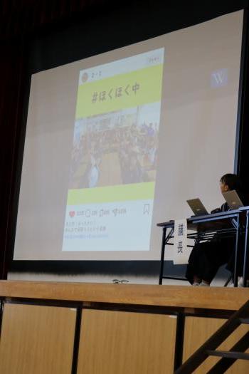 第Ⅱ部は「#北中自慢発見部 ~北部中の#を考えよう~」。各クラスが#を考え,それを級長が発表しました。そしてどの#が北部中らしいか,理由をつけて意見を発表しました。