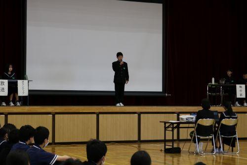 1,2年生だけでの生徒総会でした。たくさんの人前で話をするのはとても勇気が必要ですが,多くの生徒が堂々と自分の考えを発表することができました。生徒会長が最後の挨拶で「話し合ったことを実行していこう」と言っていました。「#ピカ中」になれるように,全員で行動していきましょう。