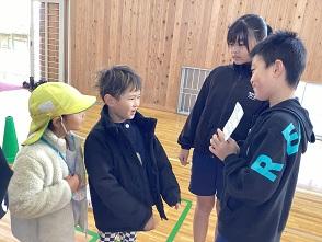 12月1日(月)の2時間目に、5年生が石巻保育園の園児を招待して、交流会を開きました。保育園の子が来年度安心して入学できるように、活動内容を工夫しました。学校クイズや教室紹介を行い、楽しい時間を過ごすことができました。