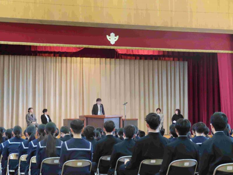 代表生徒からお別れの手紙と花束を渡し、先生方から最後のお話をいただきました。