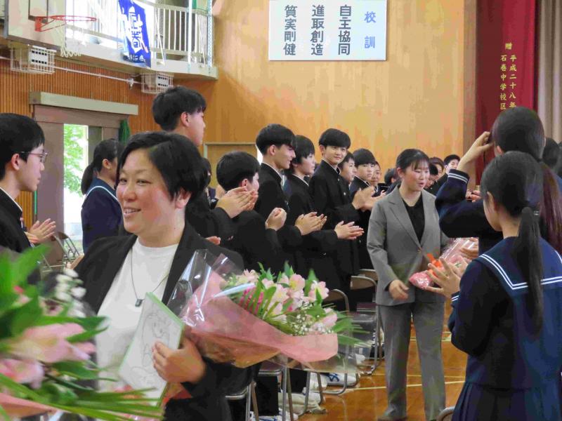 新しい学校へ変わられて、まだ日は浅いですが、どの先生も改めて石巻中のあいさつの素晴らしさ、温かい集団の雰囲気をほめていただきました。