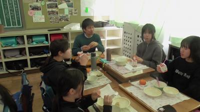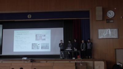 給食の時間は、防災科研、東京大学、名古屋大学の研究者のみなさんと会食し、交流を深めました。研究者のみなさんは、私が高校時代に避けた数学の微分積分や理科の物理を学び、その学びをいかして、人の命を救うプロジェクトに参加している理系のエキスパートの方々です。「理科」「数学」の学びを究めると「人の命を救う」仕事もできるということに、実感しました。研究者の人柄に触れ、子どもたちが勉強の楽しさや意味をちょっとだけでも感じてくれるきっかけになってくれればと思いました。