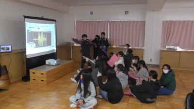 磯辺小で「実建物を対象とした瞬時損傷判断技術の実証実験」が計画されてからお願いしていた、子どもたちへの「出前授業」が実験開始から1年が過ぎた今日実現しました。一流アスリートの吉津拓歩先輩と交流と同様に、一流研究者、技術者からの出会いは、多くの気づき、学びが得られたことと思います。3時間目は、本日来校いただいた16人もの講師のみなさんの紹介と、そのチームによる共同実験の概要を説明していただきました。