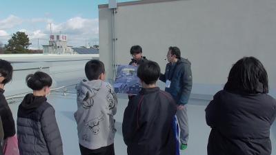 4時間目は実験が行われている南校舎及びその周辺を見て回り、実験の詳細について実物を見ながら教えていただきました。