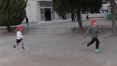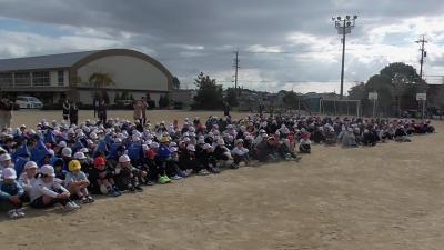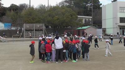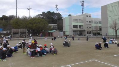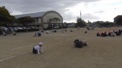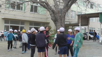 運動場で遊んでいた子供たちは、素早く安全姿勢をとることができました。室内でも同様に、安全姿勢がとられたものと思います。