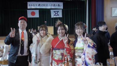 色とりどりのきれいな振袖を身にまとった参加者とともに、記念写真も撮影させていただきました。うれしさが私の表情からもうかがえると、自分の表情を見ながら感じています。磯辺小の在校生みんなが、今日「二十歳のつどい」のはれの日を迎えた先輩方のように、立派な大人になってくれればと願うばかりです。1月21日に「JICA世界とつながる教育オンラインセミナー」で、日本のコミュニティ・スクールについてお話しする機会をいただいています。小学校区でご準備いただき、開催している「二十歳のつどい」について、この写真とともに大いに自慢をしたいと思っています。磯辺小校区の持続可能なコミュニティづくりを世界に発信していきたいと思います。すてきな地域に支えられて教育活動をすすめられることを本当に幸せに感じます。 磯辺小 校長 稲田恒久