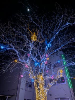 月夜に輝くモチモチの木 ムクロジイルミネーション最終日