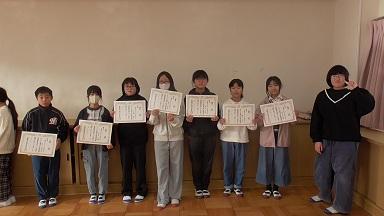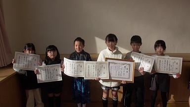12月に行いました「豊橋市競書大会」で特選に選ばれた、各学年3~4名の児童に症状をお渡ししました。入選、佳作を受賞した児童については、各学級で担任から渡してもらいました。作品については、12月個人懇談会の機会に学年掲示板等に掲示させていただきました。各家庭におきましても、習字用具。硬筆用鉛筆の準備をはじめ、ご配慮いただいたことに心より感謝申し上げます。
