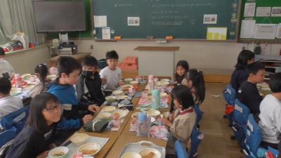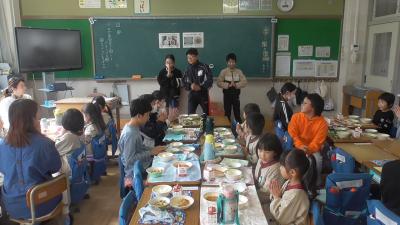 来年度の6年生と一緒にいただきますをして、給食のスタートです。