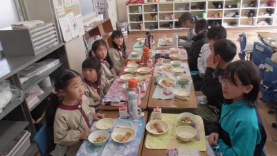 給食で牛乳も初体験となりました。牛乳パックで飲む牛乳も初めてとなりましたが給食を楽しんでもらえたようでした。新しい1年生の入学が待ち遠しいです。