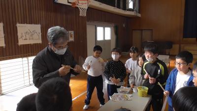 4年生は、豊橋の特産品「豊橋筆」を学ぶ体験講座「筆づくり」を行いました。12月5日は1クラス、12月8日は2クラスで授業を行いました。