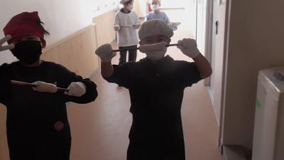 ちくわの知識を身につけた子供たちは、3階に上がって、竹の棒にすり身をつけてちくわの成型しました。私もxはレンジしたことがありますが、これがなかなかうまくいきません。でも、3年生は思った以上に上手に仕上げていました。