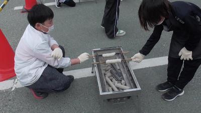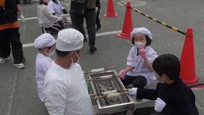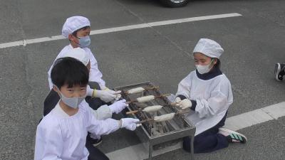 最後はお外で、焼き工程です。焦がさないように、時間をかけてゆっくりと焼き上げます。炭火焼のちくわのお味はいかがだったでしょうか。だいこん、ちくわとおいしい思いばかりして3年はずるいなあ。おいしい感動は、ずっと記憶に残ります。これが体験学習の狙いだから仕方ないですね。おでんが食べたくなっちゃいました!