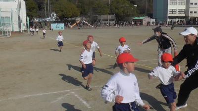 最後にランラン部門のスタートです。多くの保護者の方々の応援を受け、みんなで走ることの楽しさを味わってくれたらと願っています。