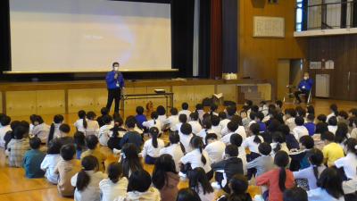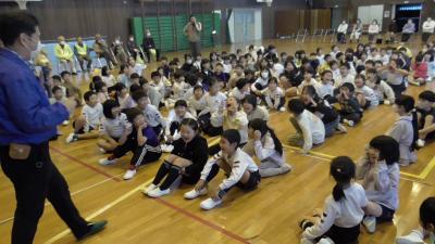 シブがき隊、セカチュウの教えでいのちを守る! 1、2年不審者対応教室(11/17)