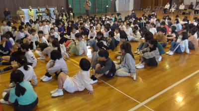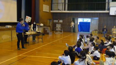 11月17日に、1、2年生を対象に登下校中や放課後等で出会った不審者に対する防犯教室を開催しました。講師は1学期に不審者の校舎侵入を想定して行なった避難訓練と同じ豊橋市役所の安全生活課の方にお越しいただきました。