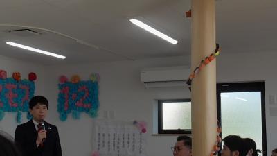 式では、長坂市長、坂柳市議会議員をはじめとする来賓の方々がご挨拶されました。坂柳議員がおしゃられたように、10月には「あいくる」の開所式もあり、新たなスタートが切られることが重なった1年であったと思い返しました。