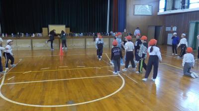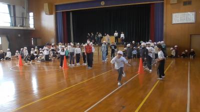 最初に拝見したのは「往復全員リレー」でした。勝敗はともかく、4学級で競い合うことをみんなが楽しんでいました。