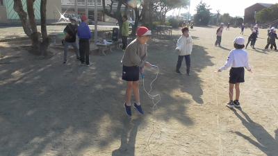 子どもたち一人一人が目標をもって練習に取り組めるのがなわとびのよいところだと思いました。1年生も、6年生もとっても楽しそうです。