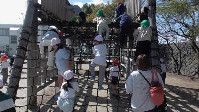 保育園児に気を配りながらも、磯辺小の子どもたちもいつも通り遊具で遊んでいました。