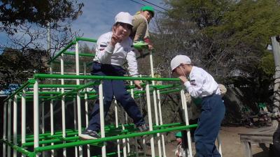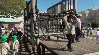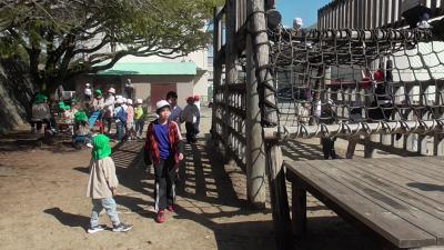 木製遊具の周りで、鬼ごっこもスタートしました。鬼ごっこ好きないそべっ子は、保育園時代から始まっているようでした。保育園の子どもたちが小学校生活のスタートを楽しみに迎えてくれればと願うばかりです。