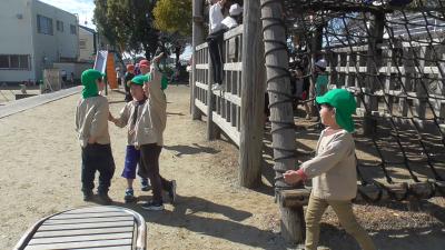 2月26日の給食体験に来校してくれた長栄保育園をはじめとする年長児のみなさんは、給食に引き続き、昼放課も学校に残り、遊具等で遊んでくれました。お兄さん、お姉さんが磯辺小に通っていることどもたちが話しかけてくれたり、引率の保育士さんに磯辺小の子どもたちが声をかけたりして。給食を一緒に食べた5年生以外の子どもたちとも交流を持つことができました。