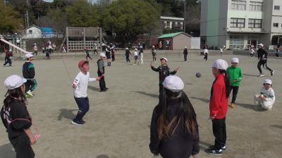 2年生が生徒発案のボランティア活動である「むくろじ活動」で、「なわとび対決」を長放課に実施してくれました。なわとびを手にした子どもたちが運動場に集まり、種目別にその数を競い、楽しんでいました。