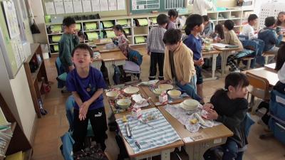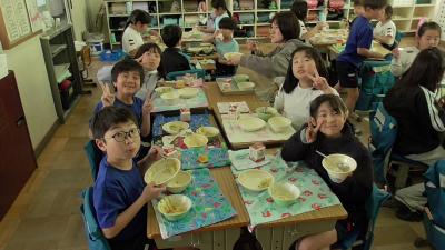 今日の給食は、牛乳、ハムとやさいのソテー、麦ごはんで米粉カレーライス、そして甘酸っぱいはっさくがつきました。検食でお先に食べた「はっさく」は比較的甘く、おいしく感じたのですが、子どもたちはどう感じたのか、それが知りたくて教室を訪れました。