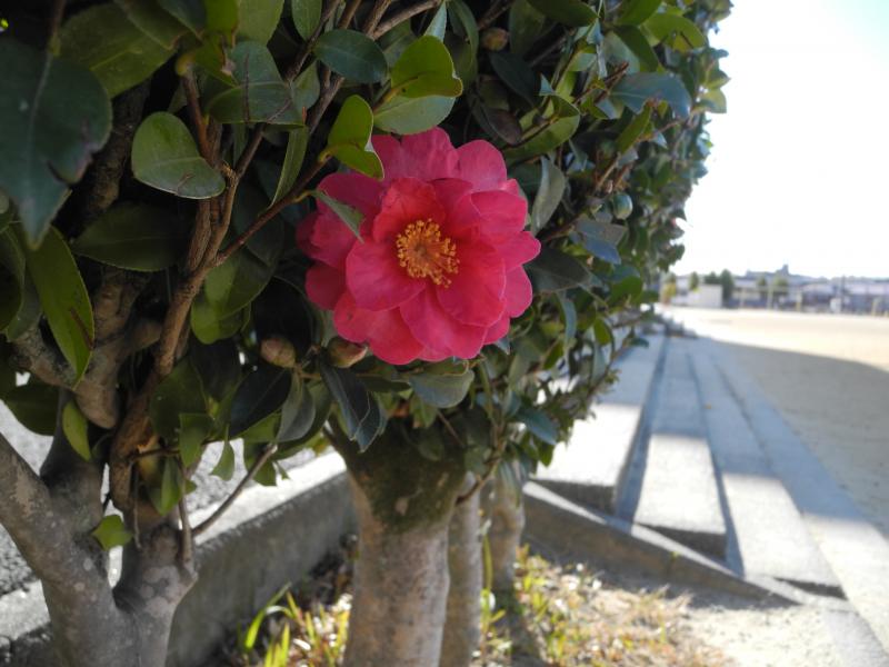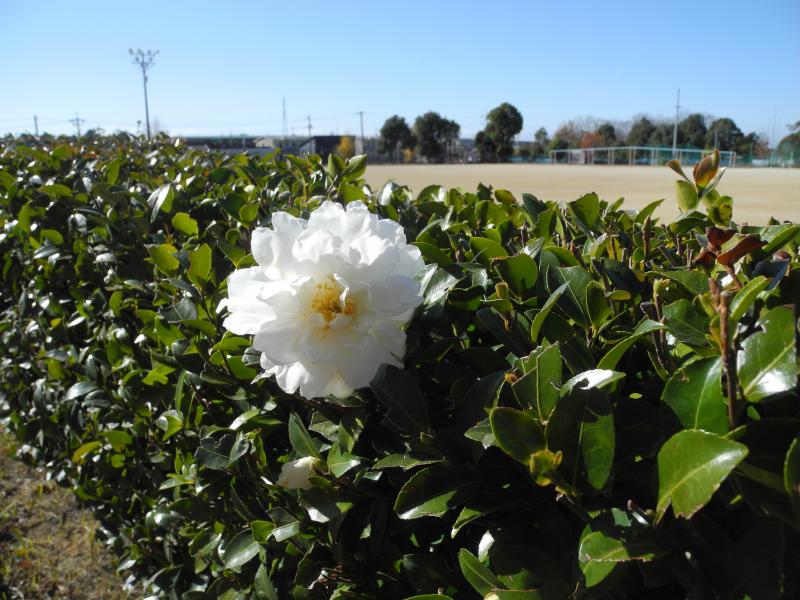 また、運動場の垣根では、山茶花(さざんか)がたくましく咲いています。
