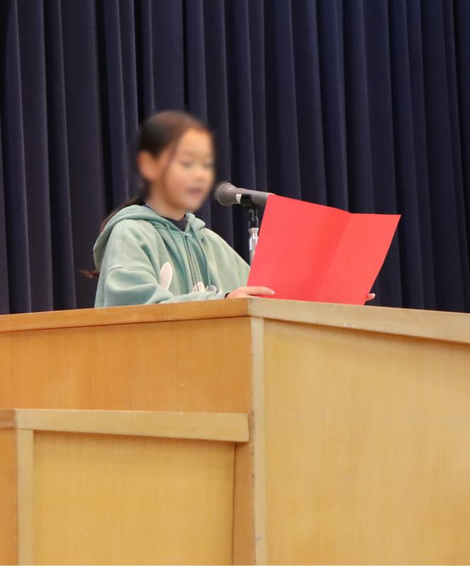 5年生の代表児童は「野外活動や委員会が忙しくて大変だったけれど、自分で考えて行動できるように