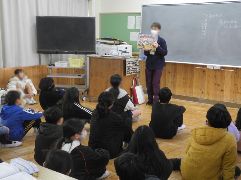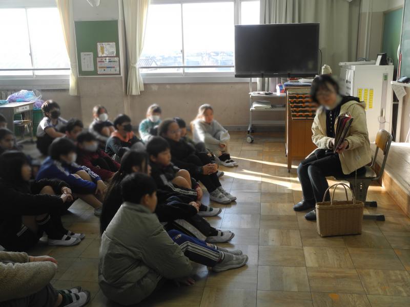 金曜日は読み聞かせ。ボランティアの方たちが朝の時間に紙芝居や朗読を披露してくれます。