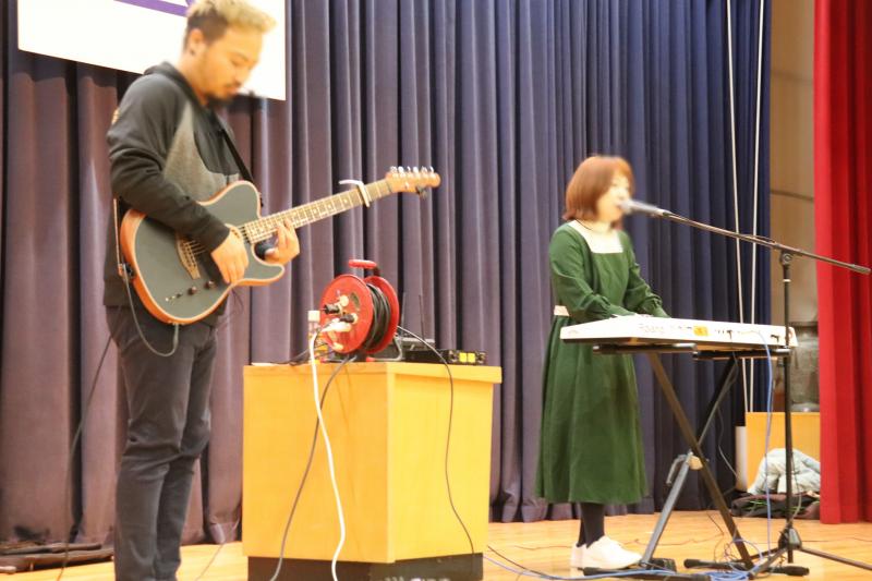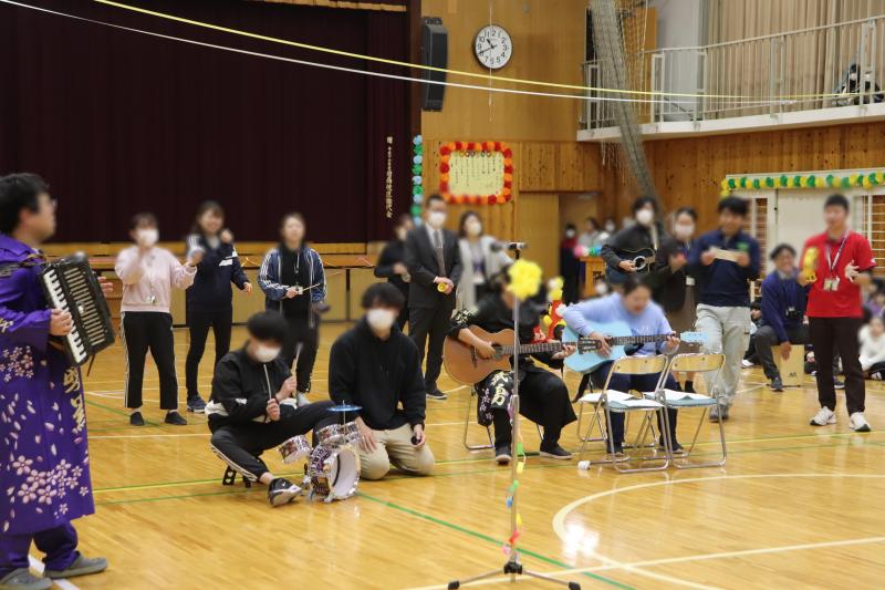 生かした出し物を見せてくれました。教職員も寸劇や演奏を披露し、その後本物の歌手「カンペキ・パンプキン」を