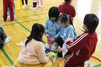 1月30日(木)。新入学児保護者会の裏番組として、1、2年生が新入学時の園児と交流を図る会です。手作りのおもちゃで、「おもちゃまつり」を開いて楽しんでもらいます。1,2年生は、立派にお兄さんお姉さんのふるまいができましたね。園児の緊張しながらも楽しそうに遊ぶ姿が見られました。