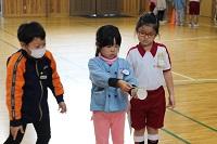 晴れ。新入学児保護者説明会がありました。保護者の皆んさんが学校の説明を受けている間、入学する園児のみなさんを、在校の1・2年生が『おもちゃまつり』で歓迎してくれました。体育館中に楽しいそうな声が響きました。