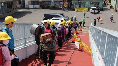 晴れ。子どもたちは汗をかきながら元気に登校しています。今年はコロナ感染予防のため1列で登校です。どの班も約束を守って登校することができています。地域の方からも登校の仕方がよくなったと誉めていただきました。これからも、お互いのために新しい生活様式を守っていきましょう。