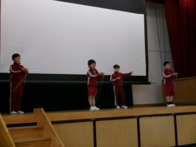 各学年の有志が集い、自分たちが日ごろから頑張っているものや、好きなことを発表しました。