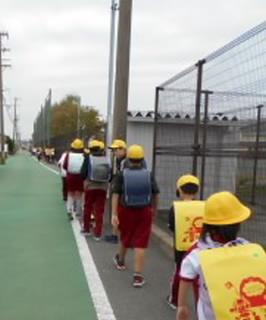 13日、教員が付き添って一斉下校を行いました。通学路の危険個所の確認も兼ねています。
