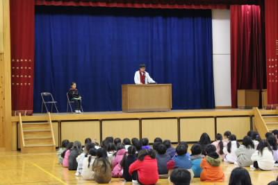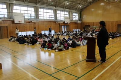 キンと冷えた体育館で、3学期の始業式が行われました。