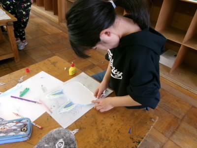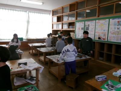 3年生が、紙版画を印刷していました。