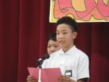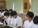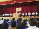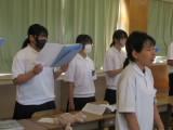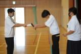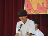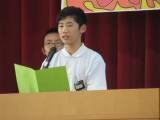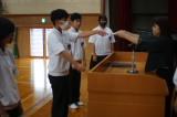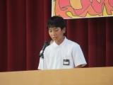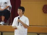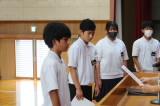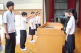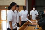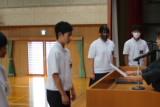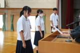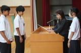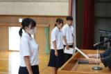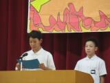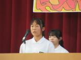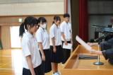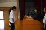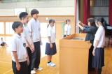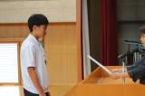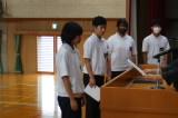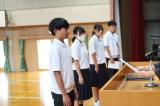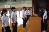 はじめに、ハンド部の市新人体育大会3位、校内スペリングコンテスト(3年)、計算コンクール(2年)の表彰を行いました。生活・学習委員会の学習5原則キャンペーンの1位(3-1)、2位(2-1)の表彰も行いました。