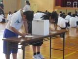 投票者の皆さんも一言も余分な話をすることもなく、一票を投じることができました。これも2・3年生が立派な姿をお手本として示してくれたからです。それもうれしく思いました。