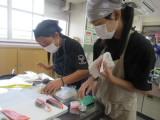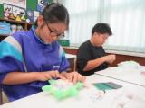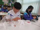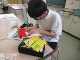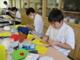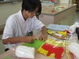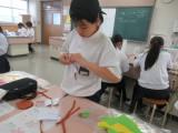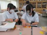 幼児のおもちゃ作りをがんばっています。(3年家庭科)