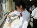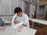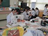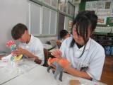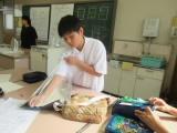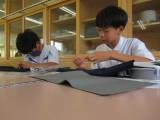 先生の説明をしっかり聞いて、一つ一つの作業を順序に沿って進めていました。多くの工程がありますが、世界に一つだけのトートバッグをがんばって完成させてほしいと思います。