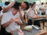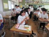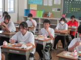 1日目3教科のテストが終わり、楽しく給食を食べている時間に教室を訪問しました。今日は月見ゼリー。残ったゼリーの争奪じゃんけんをしているクラスもありました。中間テストもあと1日です。悔いを残さないようがんばりましょう!