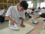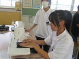 はじめに先生から教材を配られると、とてもうれしそうな表情で袋の中から布などを取り出し、大切に大切に扱っていました。その後、三つ折りの仕方やアイロンのかけ方などを丁寧に教えてもらいながら、内ポケットづくりを2時間かけて行いました。ミシンの使い方は1学期に教えてもらっているので、糸かけや下糸出しなどは、班のなかの上手にできる子たちが率先してやってくれていました。
