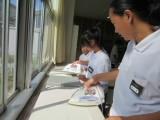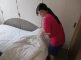 1日目ということで、緊張した様子がこちらまで伝わってきました。コンビニでは担当者のかたからレジ打ちの仕方を教えてもらったり、喜寿苑では実際にシーツ交換をしたりと、それぞれの事業所で一生懸命に取り組む姿が印象的でした。