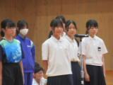 6月26日(木)の5時間目に、3年生にとって最後の大会となる市内総合体育大会に向けて、選手激励会を行いました。部活動のプラカードは1・2年生が担当してくれました。各部の決意表明では、男子テニス部は「2年生によいバトンが渡せるように、個人戦も団体戦も目標は東三出場です。」、男子ハンド部は「今まで以上によい成績が残せるようにがんばります」、女子卓球部は「東三出場目ざしてがんばります」、女子バスケットボール部は「目標は、まずは1勝。練習してきた成果を最大限発揮してがんばります」、陸上部は「東海大会出場目ざしてがんばります」、剣道部は「悔いのない試合をしてきます」とそれぞれの思いを発表してくれました。後輩からの心温まる応援メッセージ、選手宣誓、最後は全校で元気よく応援歌を歌って気持ちを盛り上げました。
