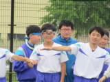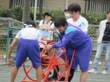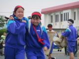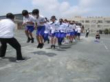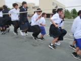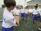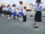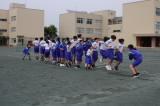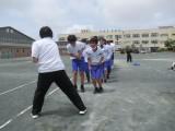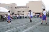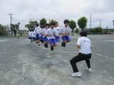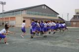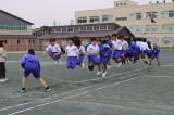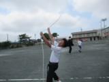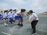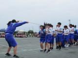 長縄練習では、1年生はまだ最高記録が6回ですが、リーダーが声を出し、心を一つに練習をしていました。