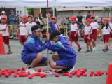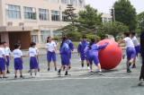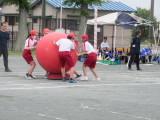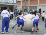 今年は小中合同種目も実施しました。「前芝学校ローリング大玉」です。1~4年生と中学生が玉を転がし、5・6年生が玉運びで活躍してくれました。練習の時から、中学生が隣にいる小学生にアドバイスをしている姿も見ることができました。